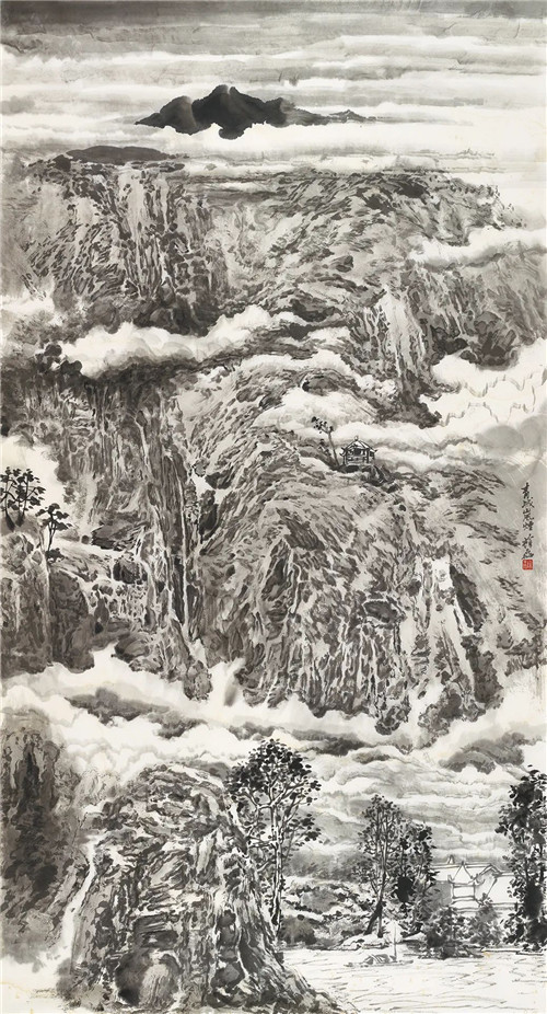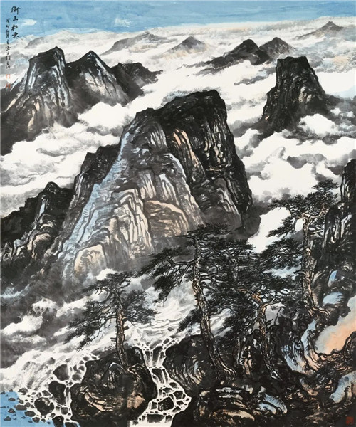 譚長(zhǎng)德 衡山松云 231cm×192cm 國畫