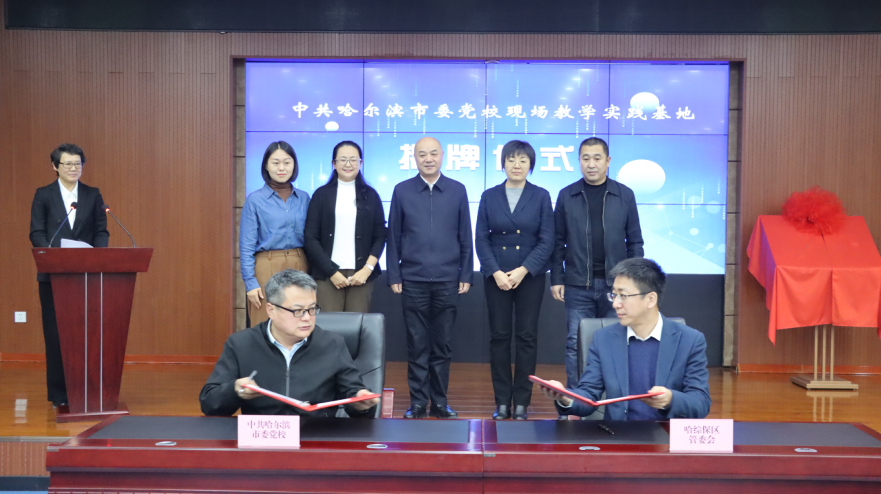 黑龍江經(jīng)濟(jì)網(wǎng)訊(記者商祺)12月13日,哈爾濱綜合保稅區(qū)與哈爾濱市委黨校舉行現(xiàn)場(chǎng)教學(xué)實(shí)踐基地揭牌儀式,哈爾濱市政府副秘書長(zhǎng)、兩區(qū)一體化辦公室主任、哈爾濱綜合保稅區(qū)管理委員會(huì)主任尹承云與中共哈爾濱市委黨校常務(wù)副校長(zhǎng)、市行政學(xué)院院長(zhǎng)孫蕊共同為現(xiàn)場(chǎng)教學(xué)實(shí)踐基地揭牌。哈爾濱市委黨校副校長(zhǎng)孫昭與哈爾濱綜合保稅區(qū)管理委員會(huì)常務(wù)副主任邸凱代表雙方簽署合作協(xié)議。