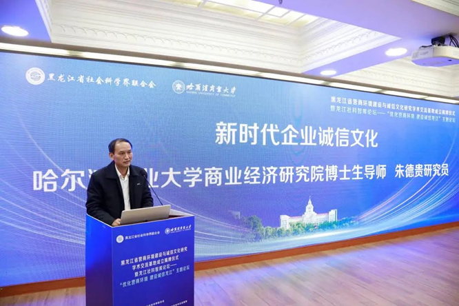 哈爾濱商業(yè)大學(xué)商業(yè)經(jīng)濟(jì)研究院朱德貴研究員以《新時(shí)代企業(yè)誠(chéng)信文化》為題作主旨報(bào)告。