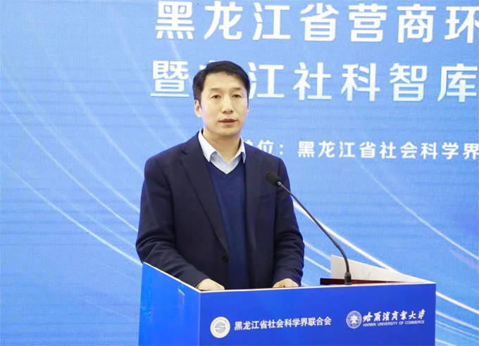 黑龍江省營(yíng)商環(huán)境建設(shè)監(jiān)督局黨組成員、副局長(zhǎng)朱江致辭。他表示,營(yíng)商環(huán)境優(yōu)化和誠(chéng)信建設(shè)是一項(xiàng)常抓常新的系統(tǒng)工程,需要契合龍江高質(zhì)量發(fā)展的實(shí)際,需要?jiǎng)?chuàng)新的理論來(lái)支撐和指引,需要全社會(huì)的共同參與。黑龍江省營(yíng)商環(huán)境建設(shè)與誠(chéng)信文化研究學(xué)術(shù)交流基地的建立恰逢其時(shí),將為我省在推進(jìn)優(yōu)化營(yíng)商環(huán)境和誠(chéng)信建設(shè)方面提供助力?;匾c龍江高質(zhì)量發(fā)展同頻共振、同向發(fā)力,廣泛深入開(kāi)展多種形式的研討、研究,推動(dòng)營(yíng)商環(huán)境優(yōu)化和誠(chéng)信文化建設(shè)學(xué)術(shù)交流成果不斷轉(zhuǎn)化。希望多方共同努力,加強(qiáng)合作,肩負(fù)使命,勇于探索,積極作為,著力推動(dòng)龍江營(yíng)商環(huán)境優(yōu)化和誠(chéng)信建設(shè)取得新的成果成效,為龍江全面振興全方位振興作出更大貢獻(xiàn)。