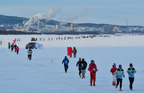 中國東極(撫遠·黑瞎子島)冰上馬拉松賽已經(jīng)連續(xù)五屆在撫遠市舉辦,憑借地域唯一性和極限挑戰(zhàn)性,成為全球五大冰上馬拉松之一,開創(chuàng)中國極限冰雪馬拉松運動的先河。本屆賽事由黑龍江省體育局、佳木斯市人民政府主辦,省政府黑瞎子島建設和管理委員會、撫遠市人民政府承辦。中國奧委會副主席、中田協(xié)名譽主席段世杰前往比賽開幕式鳴槍。賽事設有全程馬拉松、半程馬拉松、新年歡樂跑三個項目。清晨7點,撫遠市的氣溫達到了零下23.3攝氏度,選手們紛紛帶上防風面罩、保暖帽、手套、太陽鏡、防滑冰爪等應對極端嚴寒環(huán)境下的特殊裝備,在全程42.195公里的冰賽道上,徒步穿越冰雪世界,體驗當?shù)鬲毺乇┪幕兔袼罪L情,品嘗賽道補給站提供的熱氣騰騰的鱘鰉魚鍋、鮮鯽魚湯等地方特色補給品,補充能量抵御嚴寒。