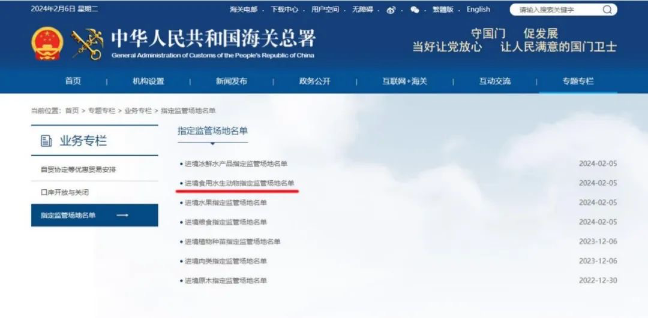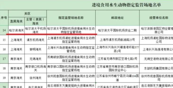 2023年12月14日-15日,海關(guān)總署專家組對哈爾濱太平國際機(jī)場進(jìn)境食用水生動物指定監(jiān)管場地進(jìn)行驗收。2月5日海關(guān)總署公告正式通過驗收。