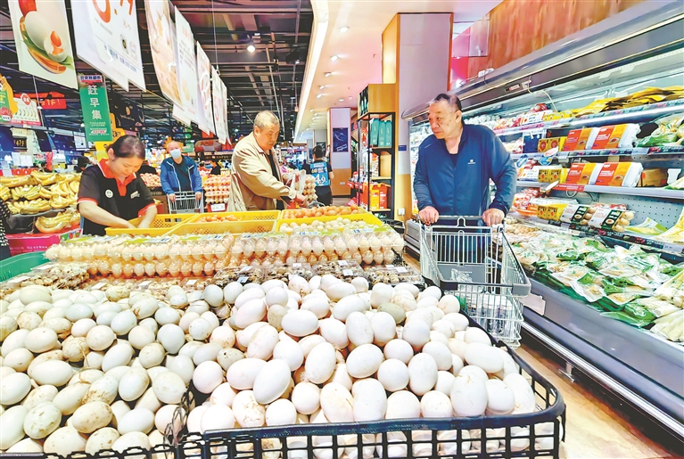 6日,哈爾濱市道里區(qū)一家超市內(nèi),許多市民在購(gòu)買(mǎi)端午節(jié)日用品,各種口味的粽子、笨雞蛋、咸鴨蛋、江米等銷(xiāo)量都很大。端午節(jié)市場(chǎng)節(jié)日氛圍濃郁、商品品種豐富、貨源供應(yīng)充足、市場(chǎng)購(gòu)銷(xiāo)兩旺。