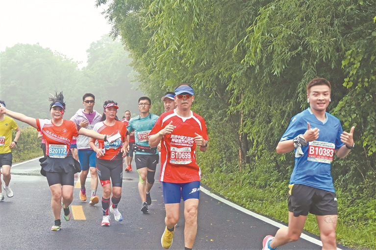 隨著發(fā)令槍響,7380名選手陸續(xù)沖出起跑線,從老山門(mén)出發(fā),途經(jīng)神龜石、月牙湖、長(zhǎng)壽泉、丞相峰,遠(yuǎn)眺南極仙翁,沿途領(lǐng)略北國(guó)森林的壯美風(fēng)光,碧樹(shù)藍(lán)天相映成趣,盡顯生態(tài)魅力。賽道上,有沖鋒在前的資深跑者,有不甘落后的新人跑者,更有“以跑為樂(lè)”運(yùn)動(dòng)團(tuán)體,以鏗鏘步履跑出一道道靚麗風(fēng)景線。