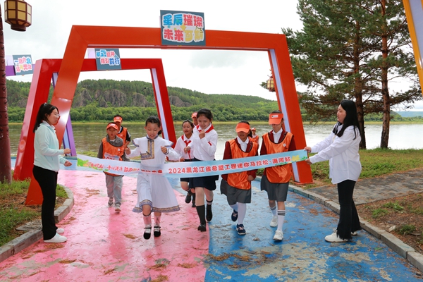 活動后,來自全省各地的少先隊員代表共同參加了跟著國旗去找北——漠河站“丁香綻放·童心港灣”“助力哈馬 迎跑未來”2024黑龍江省希望工程迷你馬拉松收官賽?!岸∠憔`放·童心港灣”“助力哈馬 迎跑未來”2024黑龍江省希望工程迷你馬拉松活動自8月9日起,在哈爾濱市阿城區(qū)、綏化市北林區(qū)、穆棱市八面通鎮(zhèn)、撫遠市臨江社區(qū)等全省47個縣(市、區(qū))的56個“丁香綻放·童心港灣”項目點所在地陸續(xù)開跑,常態(tài)化服務的2000余名少年兒童用腳步丈量自己的城市,提高對馬拉松運動的了解、認識和興趣,推進新時代希望工程“素質提升計劃”,為哈爾濱銀行2024哈爾濱馬拉松活動助力。