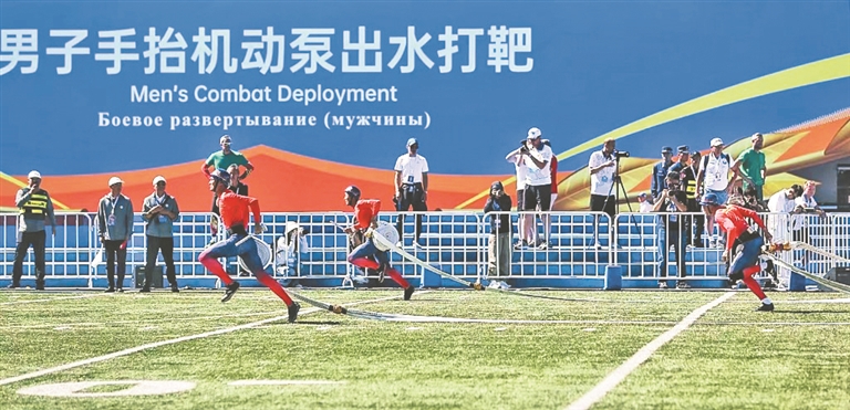 本報10日訊(記者蔡韜)10日,第19屆男子和第10屆女子世界消防救援錦標(biāo)賽圓滿閉幕。在當(dāng)日的比賽中,中國隊以25秒64獲女子手抬機動泵出水打靶比賽冠軍,以27秒72獲男子手抬機動泵出水打靶比賽第二名。
