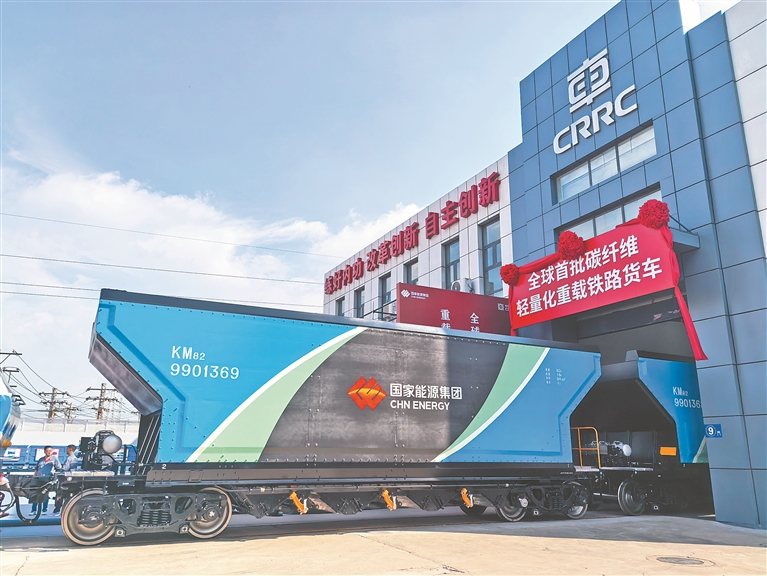 本報訊(劉廷祿 記者 孫昊)10日,在中車齊車集團齊車公司,首批6輛身著輕薄碳纖維復(fù)合材料“外衣”的重載鐵路貨車緩緩駛出生產(chǎn)線,向眾人展現(xiàn)它們輕量化智能化的超炫“科技范”,這標(biāo)志著全國首批碳纖維復(fù)合材料輕量化重載鐵路貨車正式發(fā)布。