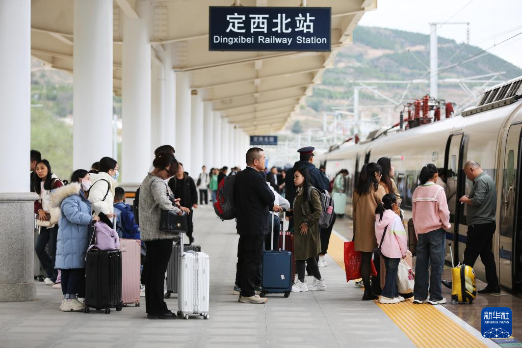 9月30日,旅客在寶蘭高鐵甘肅定西北站站臺乘車出行。新華社發(fā)(王克賢攝)