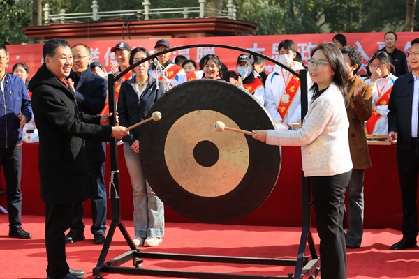 隨后黑龍江省希望工程捐助中心杜晶主任和哈師大附中校長(zhǎng)劉振成一同鳴響大鑼,鑼聲響徹整個(gè)凱德廣場(chǎng),劉校長(zhǎng)宣布義賣會(huì)正式開(kāi)始。