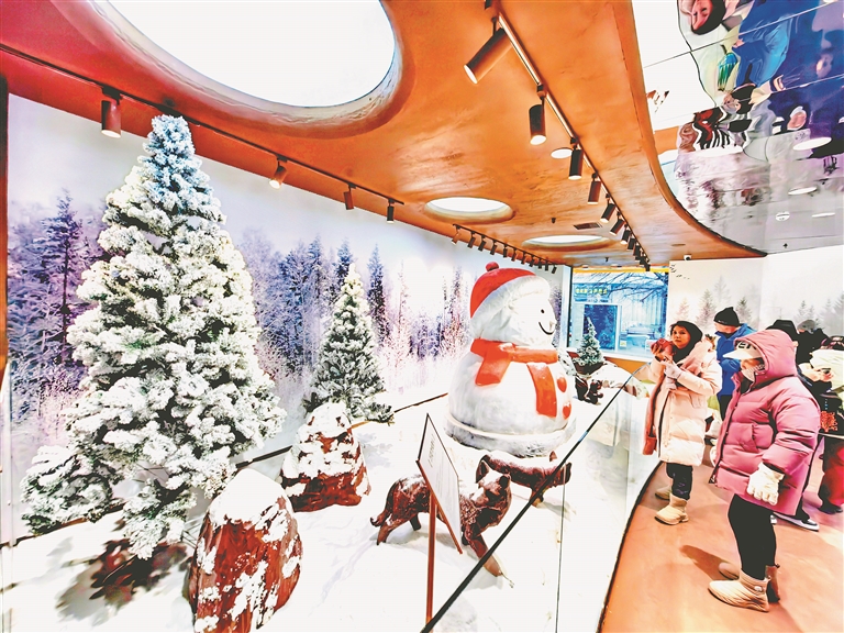 5日,哈爾濱市道里區(qū)中央大街上的巧克力博物館內(nèi),許多游客在打卡拍照。走進館內(nèi),便可以聞到一股濃濃的巧克力香味。