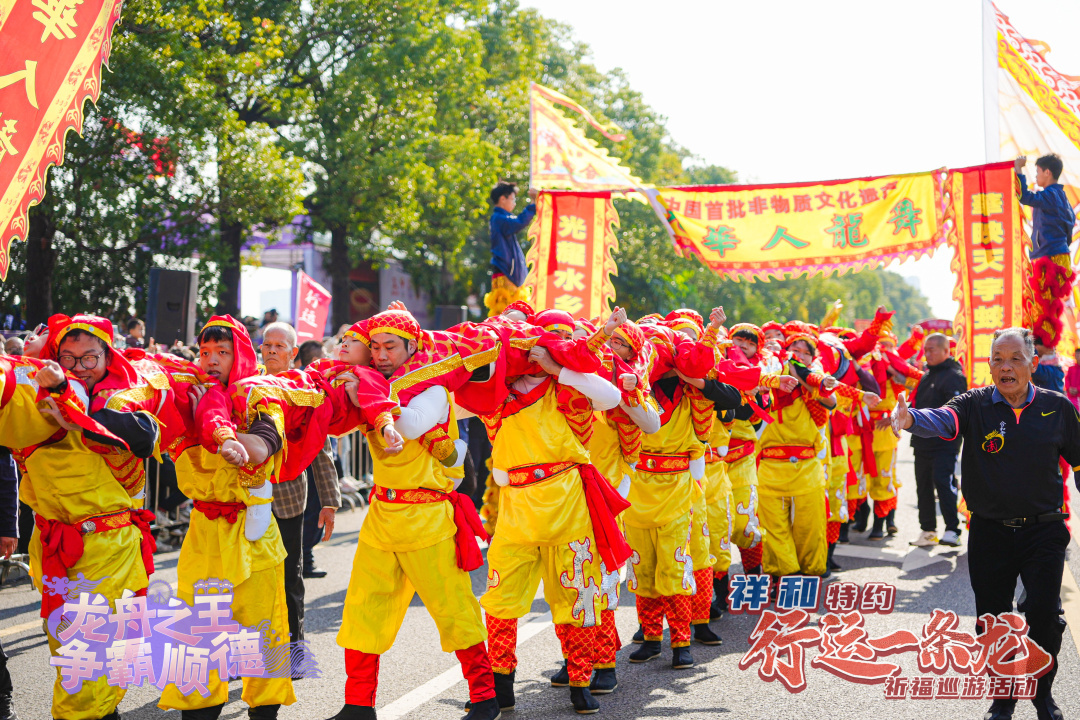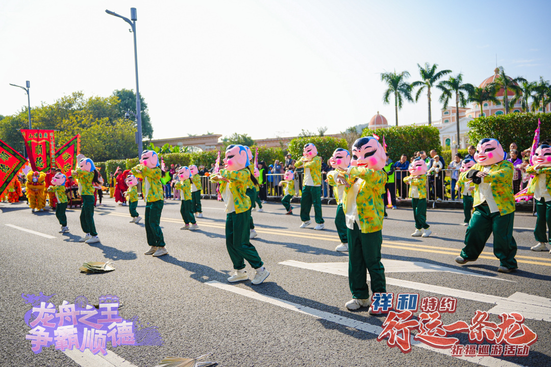 解鎖龍文化,體驗新玩法;打造新民俗,巡游好歡樂?!靶羞\一條龍”祈福巡游活動是順德全新打造的龍舟文化新民俗,現(xiàn)已成功舉辦兩屆。巡游以“拜龍母”“龍眼點睛”等民俗儀式為核心,凝練“行龍運,接龍福”的寓意,讓市民游客近距離感受民俗活動的獨特魅力。