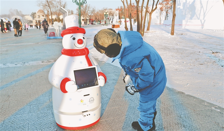 在太陽島雪博會(huì),智能機(jī)器人已然成為大家的 “團(tuán)寵”。它在雪地里穿梭忙碌,用科技的溫度溫暖著游客,給哈爾濱的這個(gè)冬天增添了一抹別樣的絢麗色彩。