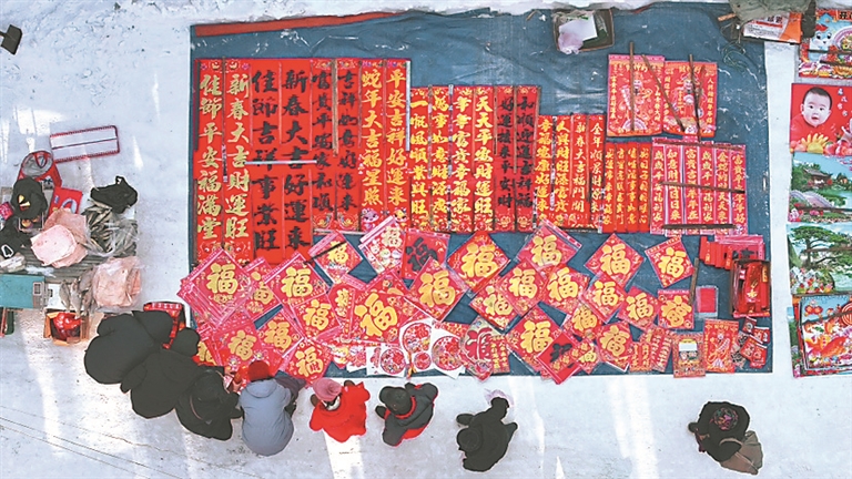 小年來(lái)臨,海林市橫道河子大集熱熱鬧鬧。小鎮(zhèn)居民在各個(gè)攤床前采購(gòu)各式各樣的年貨,挑春聯(lián),選福字,買(mǎi)干調(diào)凍貨熟食……小街上人流熙熙攘攘,年味十足。
