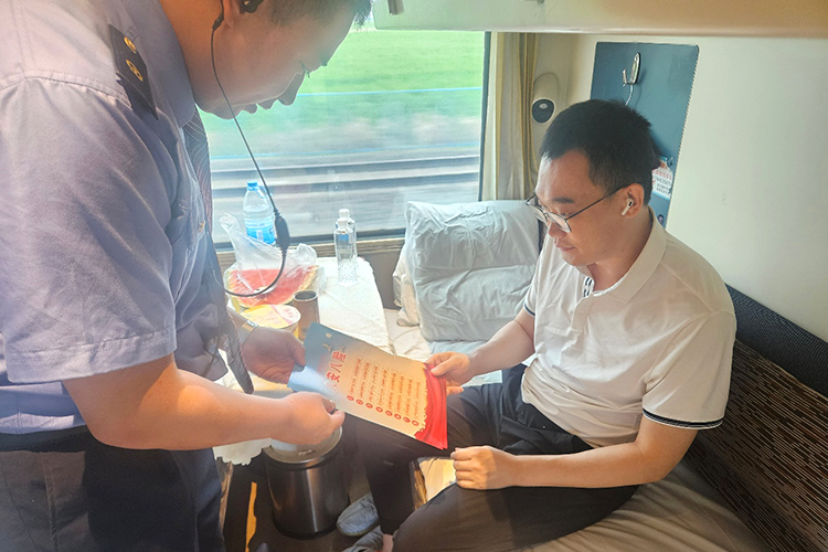 為了讓旅客也參與到安全行動中來,乘務(wù)員們化身安全宣傳員,穿梭在各個車廂為旅客發(fā)放安全知識宣傳單,不斷強(qiáng)化旅客的安全意識。