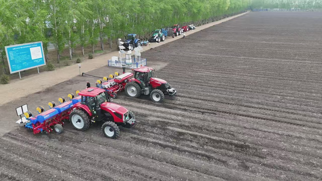 走進新華鄉(xiāng)康英華農(nóng)業(yè)種植合作社的耕地,3臺播種機轟鳴運轉(zhuǎn),正在田間勻速前行,進行玉米播種作業(yè)。該合作社理事長康英華介紹:“我們從五月初開始,每天播種320到350畝左右,現(xiàn)在新型的播種機精準度比起以前提高了很多,大大提升了播種效率?!毕冗M的機械設(shè)備為農(nóng)業(yè)生產(chǎn)注入了強大動力,而糧食產(chǎn)量的提升還需“良種”、“良法”來配套??涤⑷A選用了適宜該地塊大壟雙行密植栽培模式的玉米品種,每畝產(chǎn)量可達2000斤。