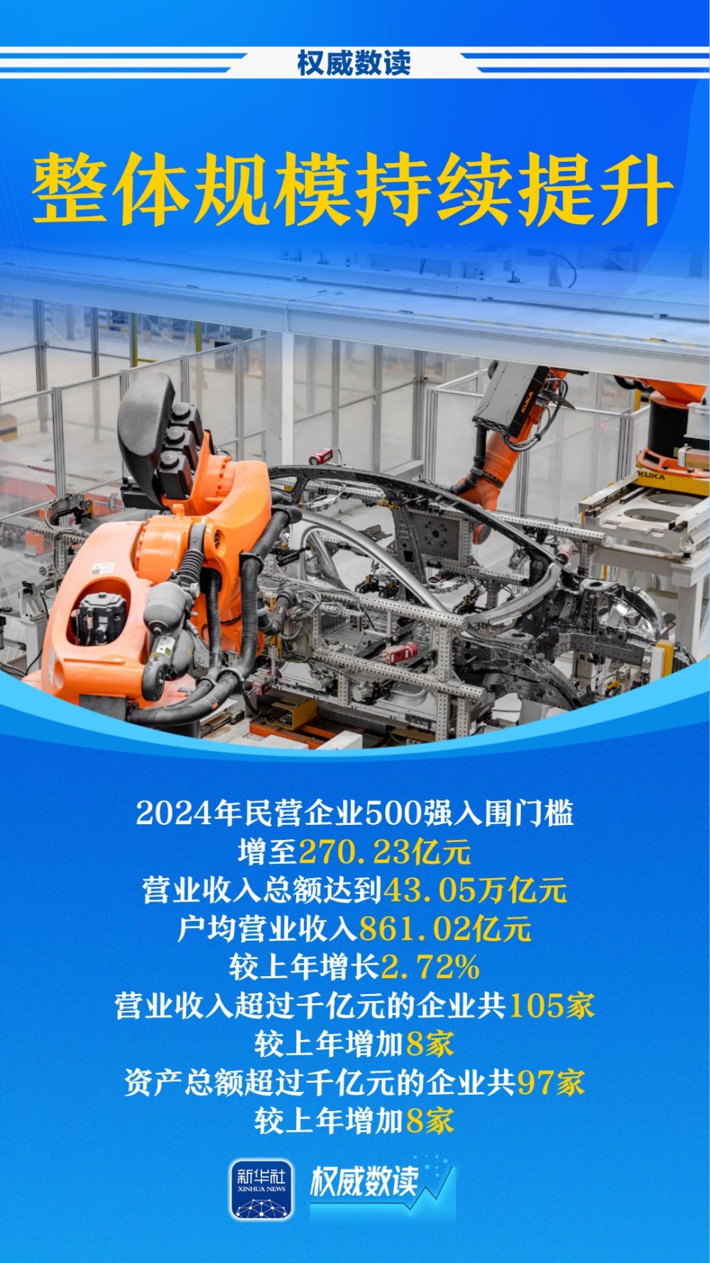 全國(guó)工商聯(lián)28日發(fā)布“2025中國(guó)民營(yíng)企業(yè)500強(qiáng)”榜單。京東集團(tuán)、阿里巴巴(中國(guó))有限公司、恒力集團(tuán)有限公司位居前三。這些“尖子生”有哪些特點(diǎn)?整體情況咋樣?詳細(xì)名單如何?點(diǎn)開(kāi)海報(bào),一起看看吧。