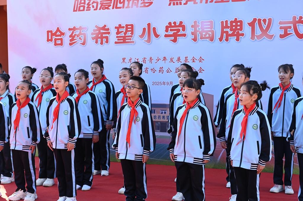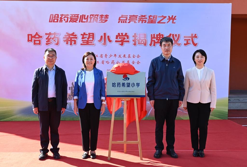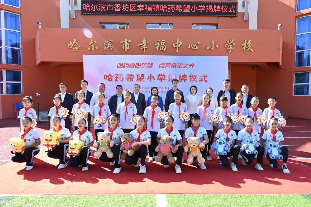 隨后,領(lǐng)導嘉賓為哈爾濱市香坊區(qū)幸福鎮(zhèn)哈藥希望小學揭牌,標志著這所學校將以嶄新面貌,承載更多夢想與希望,開啟新的篇章。