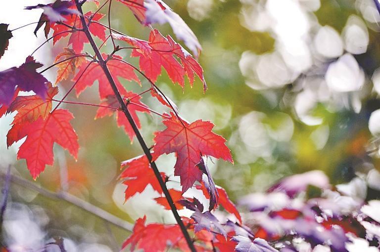 8日,寒露,二十四節(jié)氣中的第十七個(gè)節(jié)氣。在一些公園里,楓樹(shù)的葉子陸續(xù)變?yōu)榧t色,為秋季冰城再添了一道美景?;鸺t的楓葉吸引人們駐足觀賞拍照。
