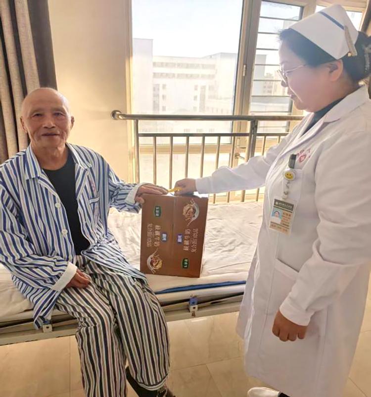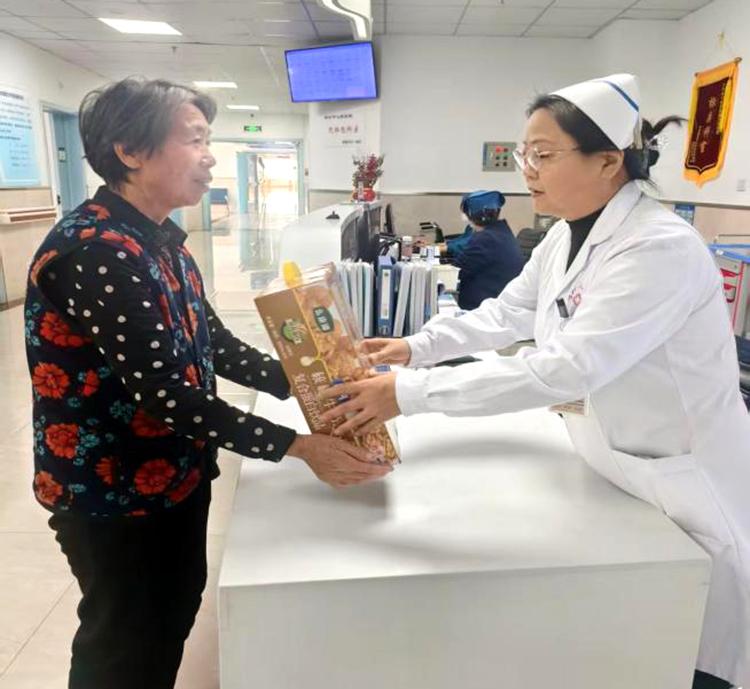 禮品雖小,情意濃重。開(kāi)展活動(dòng)期間,醫(yī)護(hù)人員們帶著精心準(zhǔn)備的小禮品,走進(jìn)每一位60歲以上老年患者的病房。這些小禮品雖然價(jià)格并不昂貴,但卻飽含著對(duì)患者的深深祝福。柔軟舒適的保暖襪,為患者在漸冷的霜降時(shí)節(jié)增添一份溫暖;營(yíng)養(yǎng)豐富的滋補(bǔ)品,助力患者增強(qiáng)身體抵抗力;寓意吉祥的平安符,寄托著對(duì)患者早日康復(fù)的美好期許。當(dāng)醫(yī)護(hù)人員將一份份小禮品送到患者手中時(shí),患者們的臉上都洋溢著驚喜與感動(dòng)的笑容,紛紛對(duì)科室的貼心關(guān)懷表示感謝。患者劉阿姨激動(dòng)地說(shuō):“在這個(gè)特殊的節(jié)日里,收到你們送的禮物,心里特別溫暖”。
