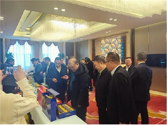 恩施州高新投資發(fā)展集團有限公司董事長胡銘現(xiàn)場推介與硒資源研究與生物應(yīng)用湖北省重點實驗室聯(lián)合開發(fā)的特色硒精深加工產(chǎn)品。