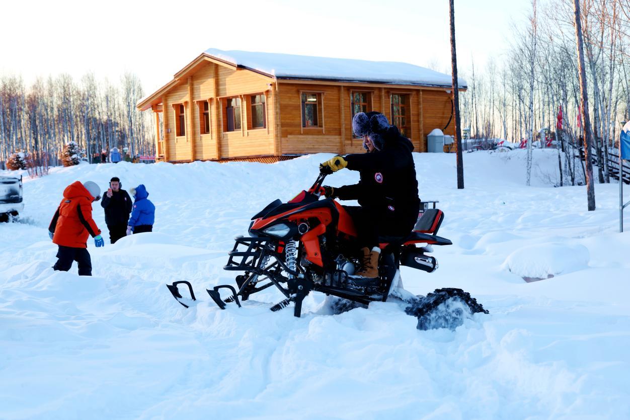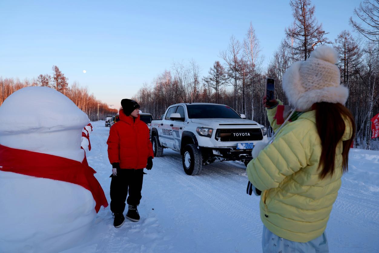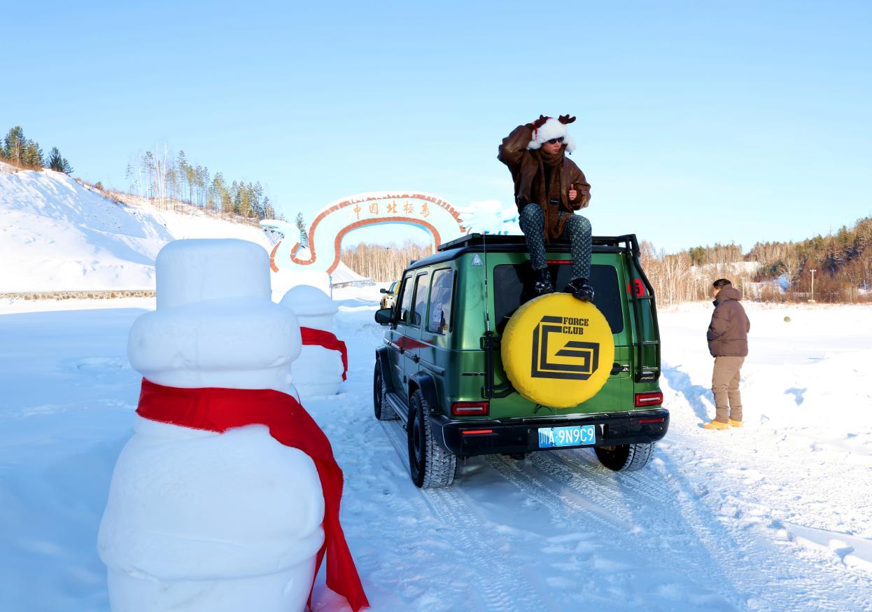 當日中午,隨著車隊緩緩駛入北極島景區(qū)南門,美麗的雪地廣場瞬間被熱情點燃。游客們紛紛走下車,不顧零下數(shù)十度的嚴寒,或在松軟的雪地上玩起汽車漂移,或與雪人合影留念,或揚起漫天雪花享受雪的輕撫,汽車馬達的轟鳴與歡聲笑語交織回蕩,讓這片銀裝素裹的天地化作歡樂的海洋。