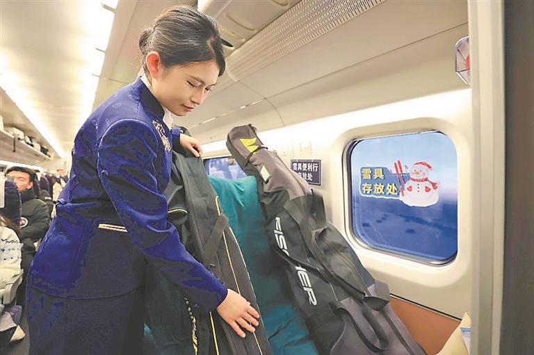 實行雪具便利行服務(wù),雪具在動車組上也有了專屬“座位”。徐率攝