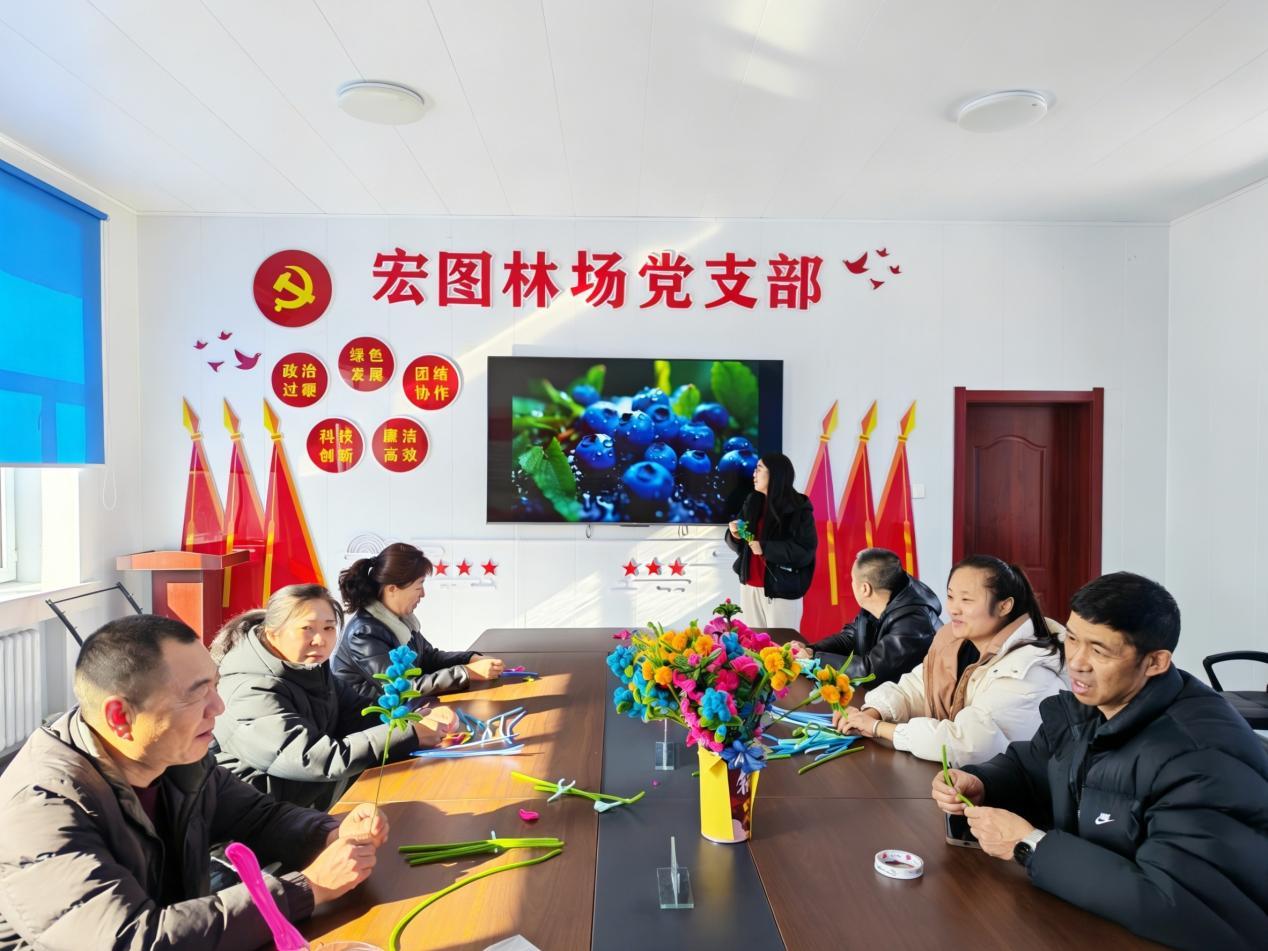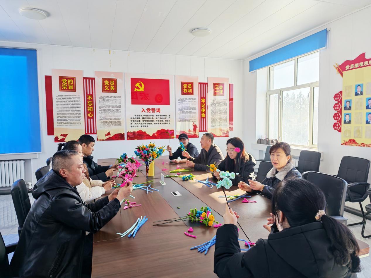 活動現(xiàn)場,大家認真聆聽專業(yè)人員講解野生興安杜鵑、野生藍莓等本土植物保護的相關(guān)知識。隨后,通過觀看教學(xué)視頻系統(tǒng)地學(xué)習(xí)扭扭棒基礎(chǔ)造型技巧,在動手實踐中加深對野生植物的保護與認知。實操環(huán)節(jié),職工們圍坐一堂、相互切磋,指尖翻飛間,一根根彩色扭扭棒被巧妙彎折、組合,化作栩栩如生的野生興安杜鵑、飽滿圓潤的藍莓果束等精美手工作品。作品展示環(huán)節(jié),大家踴躍分享創(chuàng)作靈感、交流制作心得,集體合影定格溫馨瞬間,現(xiàn)場氛圍輕松融洽、其樂融融,充分展現(xiàn)出林場職工昂揚向上、心靈手巧的良好精神風(fēng)貌。